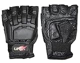 Features Fingerless Gloves Fits most players from M-XL Double Stitched Genuine Leather Padded Palms Washable Breathable Flexible pvc armor back Light weight mesh High Protection