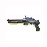 spring powered single shot GA870 CQB airsoft bb/paintball shotgun. It comes with pack of bbs, laser, shoulder strap, protection glass, target and adjustable sight. Holds up to 50 bbs and shoots approx 240 FPS(shoots very hard). A very nice collector and practice gun. It packed in a colorful gift box.