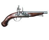 - Flintlock pistols were so called because the lock uses a flint to strike sparks into the priming pan when the trigger is pulled.