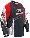 Description CONTACT JERSEY tZ – designed and tested for the most intense paintball conditions imaginable. These jerseys are made to protect and enhance your paintball experience, balancing lightweight protection and venting. This jersey has stretch panels at the shoulders for unimpeded mobility and intelligent paintball specific reinforced padded zones without compromising breathability. The number one choice for pro paintball players, every detail has been researched and refined for perfection in paintball. Features Engineered mesh panels designed by Empire that reduce the amount of fabric required in a jersey, incorporating passive cooling to create a natural convection flow of heat away from the body. New slider forearms with 860D nylon on the wrist and elbow to protect your jersey and articulated 5mm built in elbow pads to protect you when sliding. Micro-ribbed cuffs to easily slip over your grind elbow pads and gloves, plus fitted thumbhole loops on the cuffs to help keep the jersey in place when you dive. Micro fiber backs to the cuffs to remove any unwanted splatter from your goggles. Reinforced warrior pad zones. The Contact Jersey covers paintball specific zones with a light layer of cushion when you are in the actual shooting/playing position. Your outer wrist and deltoid are most exposed in game situations so thats what weve protected. Bottle Gripz Silicone on the shoulders and arms and silicone Screened Empire Logo on the tail of the jersey to help grip your harness and tanks in place. High output mesh venting on the chest and under arm with a 4-way stretch for a full range of motion.
