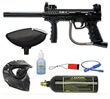 * MIL-STD-1913 Accessory Rail * Removable feedneck adapter * High-flow aluminum Air source adapter * Modular design for easy customizing and upgrading * Designed for use with CO2 or High Pressure Air * Meets or exceeds all applicable ASTM standards * Caliber – 0.68 * Action – Semi-Automatic * Barrel – Removable 9in ported (A5 thread) * Power – CO2 or Compressed Air (High Output) * Construction – Aluminum & Polymer * Effective Range – 150+ feet * 20 Oz Co2 Tank * 1 oz Maddog Drool Gun Oil * Zephyr Paintball Barrel condom * Maddog Jerk Squeegee * Anti Fog Paintball Mask (PMI or GenX Brand may Vary) * Spring Loaded 200 Round Hopper