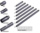 NEW .68 Caliber Recon Barrel. The high quality of these barrels will give you supreme performance on the field! These new Recon Barrels are designed on the outside for looks and engineered on the inside to greatly improve accuracy and reliability. Available in 6 8 10 12 14 16 and 18 This is how the barrel works: the inside of the Tactical Barrel (the bore) consists of many fine cuts that extend for the full length of the barrel. These cuts look like 10 sets of tiny train tracks. The track portion is called the “land.” The portion that is cut away is called the “groove.” The purpose of the land and groove pattern is to “glide and guide” the paintball down the bore as well as provide a “spin-free projection” to stabilize the paintball in flight. The Tactical Barrel will not just make your marker look and feel better but will also enhance your accuracy as well! The outside diameter of this barrel is 1 inch.