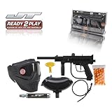 Features JT Outkast 0.68 Caliber paintball marker Multiple Picatinny rails for adding accessories Lightweight Polymer Construction Vertical bottom-line adaptor Works with CO2 or Compressed AirEasy cleaning bolt removal system JT Guardian mask 200rd Hopper and 50 Paintballs 90gram CO2 and Adapter Squeegee, Barrel Plug, Instruction Manual