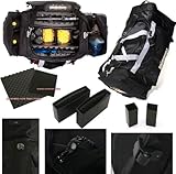 Description ?Mega body bag Size is 34″L X 14-1/2″W X 15″H. The Material is dark gray ballistic nylon its waterproof, cold weather proof (Will not get ?stiff or freeze) super durable, and lightweight. Lower edges of the bag all have integrated rubber ribbed protective strips. The bottom of the bag has 5 Metal ?feet for protection and durability. All straps are reinforced at stitched areas. The zippers are big and wide and the custom shaped Long Neck zipper handle is easy to grab even when wearing gloves. The zippers also have a ?lock feature for security with a lock included. The shoulder straps are padded for carrying comfort and connected with removable metal hooks. The bag has a total of 10 compartments. 2 gun trays, 6 modules, and 2 Industrial foam gun protectors. The 2 end pockets are big enough to carry just about anything. The inside of the bag is even more spacious with its huge easy access zippered opening the inside of the bag can hold two large gun trays and 4 heavy duty square modules. The roller wheels offer pulling ease on many surfaces and the handle on the opposite end is adjustable. A toe tag is included for name and address information.features Premium grade ballistic nylon material with pebble grain finish. It?s strong and durable. Proven heavy duty double stitching on straps. Integrated rubber corner supports. Durable metal bottom feet. Industrial strap hooks. Military grade metal longneck zipper handles. Huge opening top to provide a easy access. Large mesh zippered exterior pocket. 2 large side pockets. Adjustable cushioned shoulder support. Heavy duty foam inserts. Heavy duty plastic trays. Toe tag Information holder. Breaks down easily for storage. Metal lock & key.5 color high definition waterproof logo. Heavy duty large rollers (Mega Only).