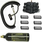 Description This includes a deluxe 6+1 paintball harness and 6 heavy duty 140 round pods. You also get a New Heavy Duty Coiled Remote with Quick Disconnect On/Off so you can put the tank in your harness, PLUS you get a brand new 20oz PMI/Spyder tank with pin valve.