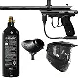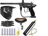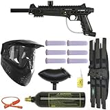 The Spyder RT is an all metal electronic paintball marker which includes features such as a Rocking Trigger Frame, a CAMD (Color Access Mode Display) Circuit Board, a 4-Way Adjustable Trigger, an ACS (Anti-Chop System) Delrin Bolt and comes complete with 9.6v Rechargeable Battery and Charger. This exclusive Amazon package also includes the 9v Fasta Loader for added speed and also a 12 oz. tank and 5+4 harness to carry all the ammo you might need for a full game of speedball or scenario play.
