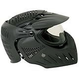 An affordable mask for beginners to paintball, JTUSA’s full-sized Elite Headshield provides complete, all-around protection. The all-black Headshield offers a wealth of venting to keep you cool when the action gets hot–from the top to the sides. It has a standard foam interior, adjustable nylon stretch lens strap, adjustable chin strap that clicks to lock, and an adjustable rear plate to protect you from shots fired from behind. The Headshield also offers a 180-degree angle of vision, visor, and hard face protection. It comes with a clear Single lens, which is recommended for average, temperate weather conditions where fogging will not be a factor. Additional lenses with tinting and fog-resistant Thermal protection are also available.