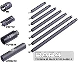 NEW Spyder MR1 MR2 MR3 .68 Caliber Recon Rifled Barrel. The high quality of these rifled barrels will give you supreme performance on the field! The new Recon Rifled Barrel is designed for scenario paintball markers such as those from Spyder MR1 MR2 MR3 BT Paintball and our Real Action Paintball T68! These barrels are designed to accept a handguard front sight rail system and even grenade launchers! These new Recon Rifled Barrels are designed on the outside for looks and engineered on the inside to greatly improve accuracy and reliability. Available in 6 8 10 12 14 16 and 18 . The Spyder MR1 MR2 MR3 Recon Rifled 7/8 Barrel is key to converting a paintball marker for scenario play. It can be used as an attachment point for all manner of accessories as the Recon Rifled Barrel is scaled from military specs and takes most attachments without anything modifications. The barrel can accommodate rails mounts laser sights and grenade launchers without making any changes to the marker or the barrel. This Recon Rifled Barrel will not just make your marker look and feel better but will also enhance your accuracy as well! The outside diameter of this barrel is 7/8th inch.