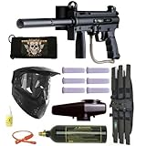 * Adjustable Velocity * Stainless Steel Braided Air Hose * Secure Carry Handle * Fixed Sight Rail * Removable Magazine with Tool Storage * Built-In Sling Attachments * Comes with O-rings and allen wrenches to help maintain your gun. * 20 Oz Co2 Tank * 1 oz Maddog Drool Gun Oil * Zephyr Paintball Barrel condom * Maddog Jerk Squeegee * Anti Fog Paintball Mask (PMI or GenX Brand may Vary) * Spring Loaded 200 Round Hopper