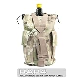 This MOD pouch can carry any air tank that is 68ci to 120ci It is fully compatible with the paintball vest and the tacticcal ten vest It can also be to mounted on any molle gear or on a web belt.