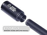 This muzzle break amplifies your paintball gun firing sound down range. It resonates loud and realistic machine gun firing sound. Compatible with all markers with a tactical barrel including T68 Viewloader Tippmann BT and all Spyder. Made out of 100% metal.