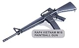 The Vietnam M16 Paintball Marker is designed to replicate the look and feel of the M16 used by the US military the Vietnam War. The Vietnam M16 Paintball Marker is .43 caliber and is magazine fed. The Vietnam M16 Paintball Marker in .43 caliber is built from the RAP4 METS system. This marker is designed to replicate the look feel and action of the real M16. Its features mimic the M16 with shell ejection after every shot magazine-fed paintball rounds and the option of a collapsible or solid stock housing and a cleverly disguised CO2 cylinder. The RAP4 METS shoots .43 caliber paintballs which are loaded into alloy or biodegradable plastic shells. The latest technological advances in the RAP4 METS line improve the accuracy range and overall precision of the marker and offer the added realism of real-world functionality. Key Features: – Adjustable for semi- or fully-automatic fire – Shell casings are ejected after each shot – Clip-fed 20 round magazine – Can be fully submerged in water – Velocity of 350 fps to 450 fps (adjustable) – All metal construction – Air power source hidden inside the butt stock – Simple to operate and easy to maintain
