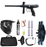 * Standard CA Thread Vertical Adapter * Tool-Free Striker Plug Design * 10 Micro Ported Barrel * No-Slip Rubber Grip Panel * Two Finger Trigger * External Velocity Adjuster * Steel Braided Hose Line * Inline Bottom-line ASA * Operates on CO2 or Compressed Air * 20 Oz Co2 Tank * 1 oz Maddog Drool Gun Oil * Zephyr Paintball Barrel condom * Maddog Jerk Squeegee * Anti Fog Paintball Mask (PMI or GenX Brand may Vary) * Spring Loaded 200 Round Hopper